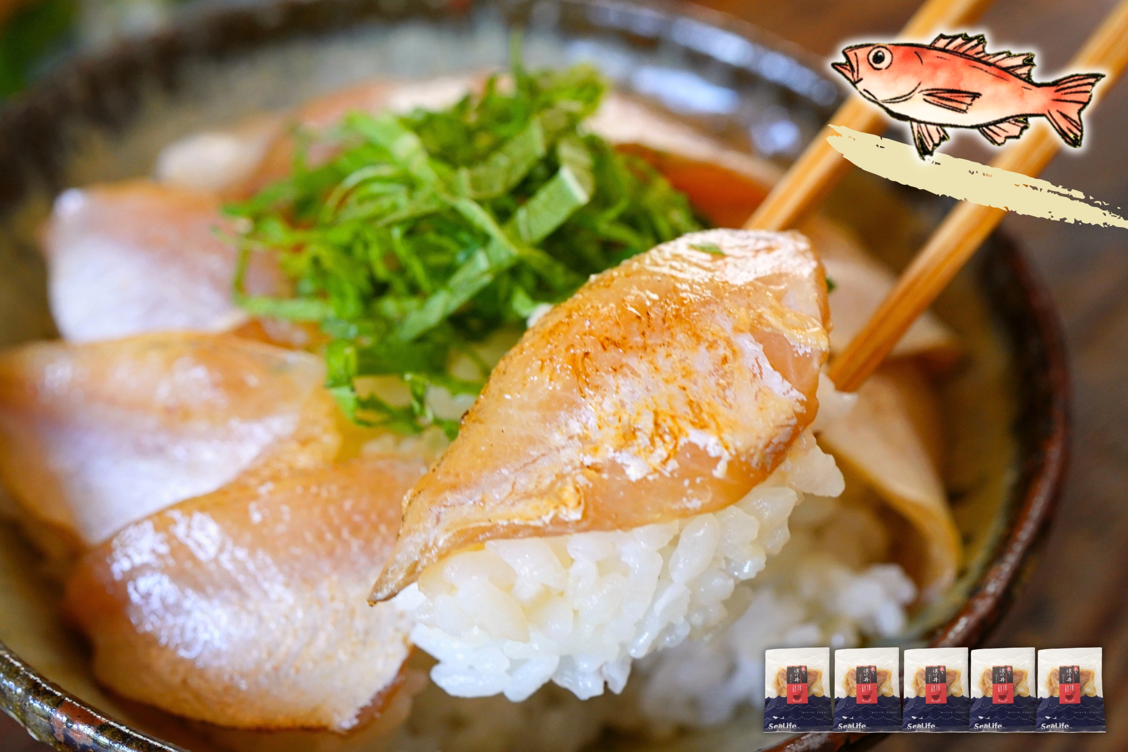 ていねいに捌かれた切身を、茶碗サイズの白飯に乗せ上品にお召し上がりください!